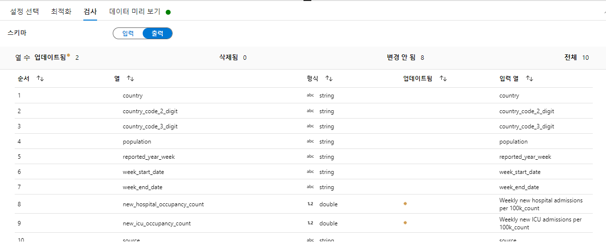 - 스키마 덮어쓰기 후 데이터 미리보기 탭으로 넘어갑니다.