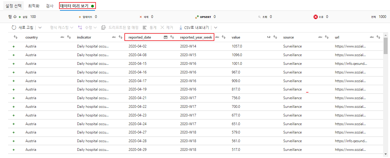 - 검사 및 데이터 미리 보기를 진행합니다.