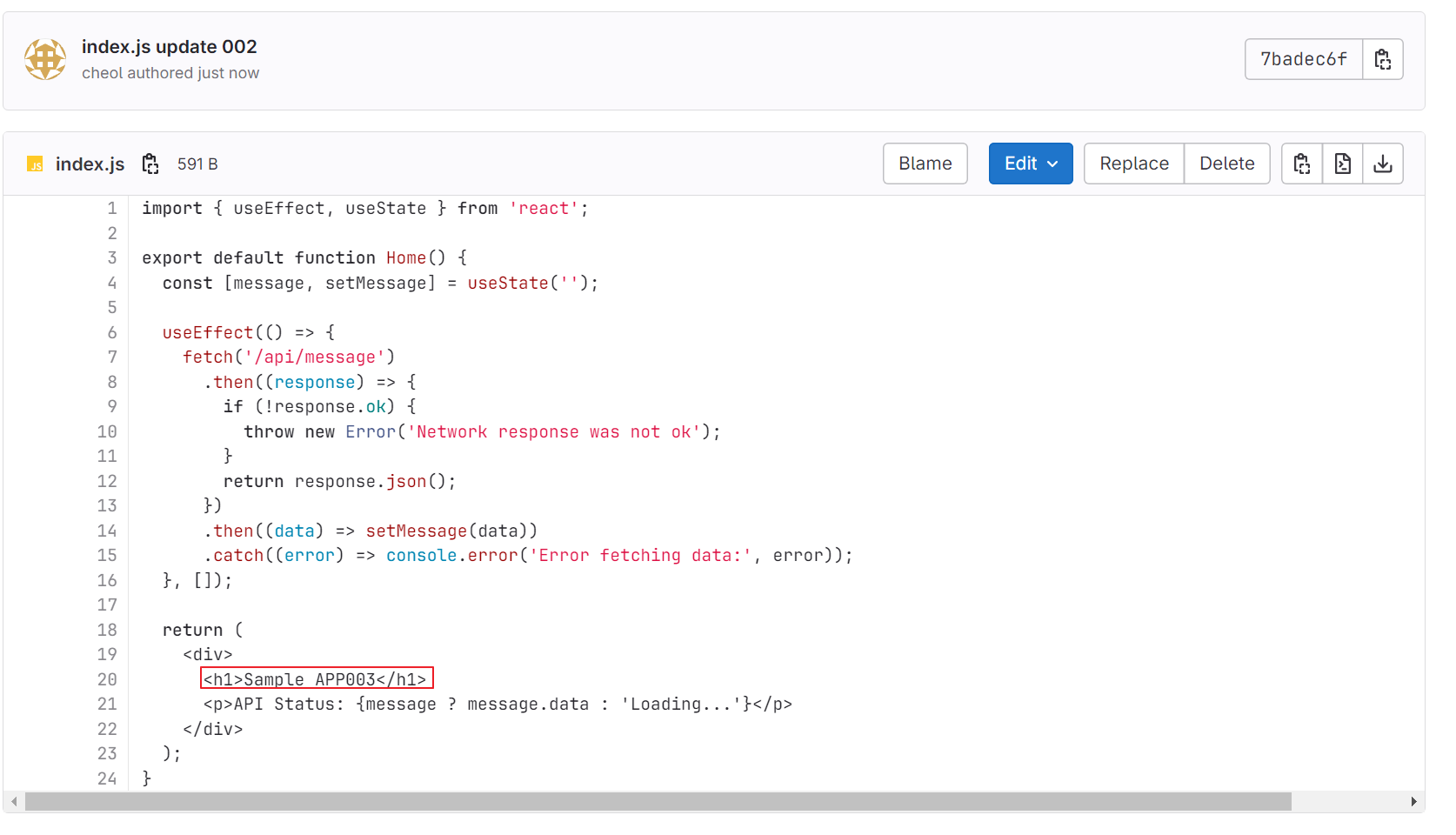 파이프라인 실행 후 웹 페이지 내용이 Sample APP003이 나오면 성공이다.