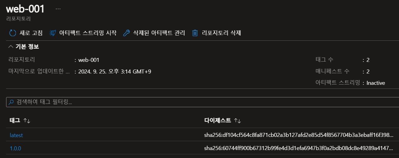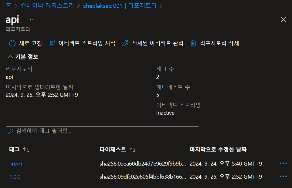 - Azure Container Registry 이미지 확인