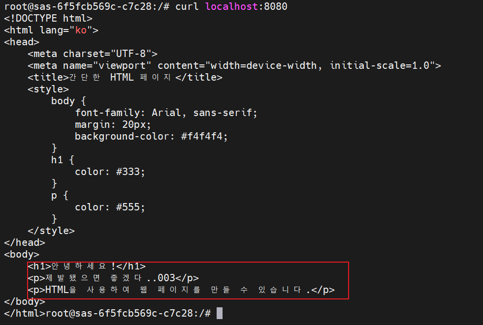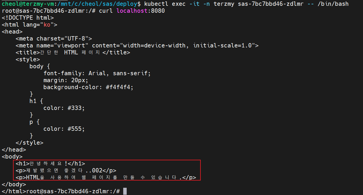 - 배포된 Pod에 직접들어가서 확인해본다.