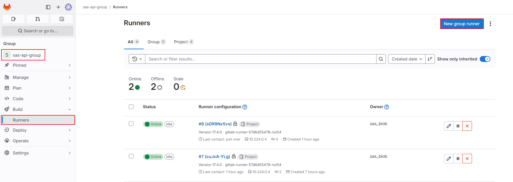 - Group >> runners >> New group runner 생성