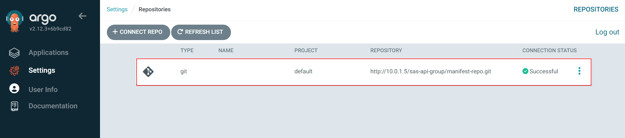- ArgoCD에서 Gitlab repo에 있는 manifest repo를 연결하는 과정이다.
