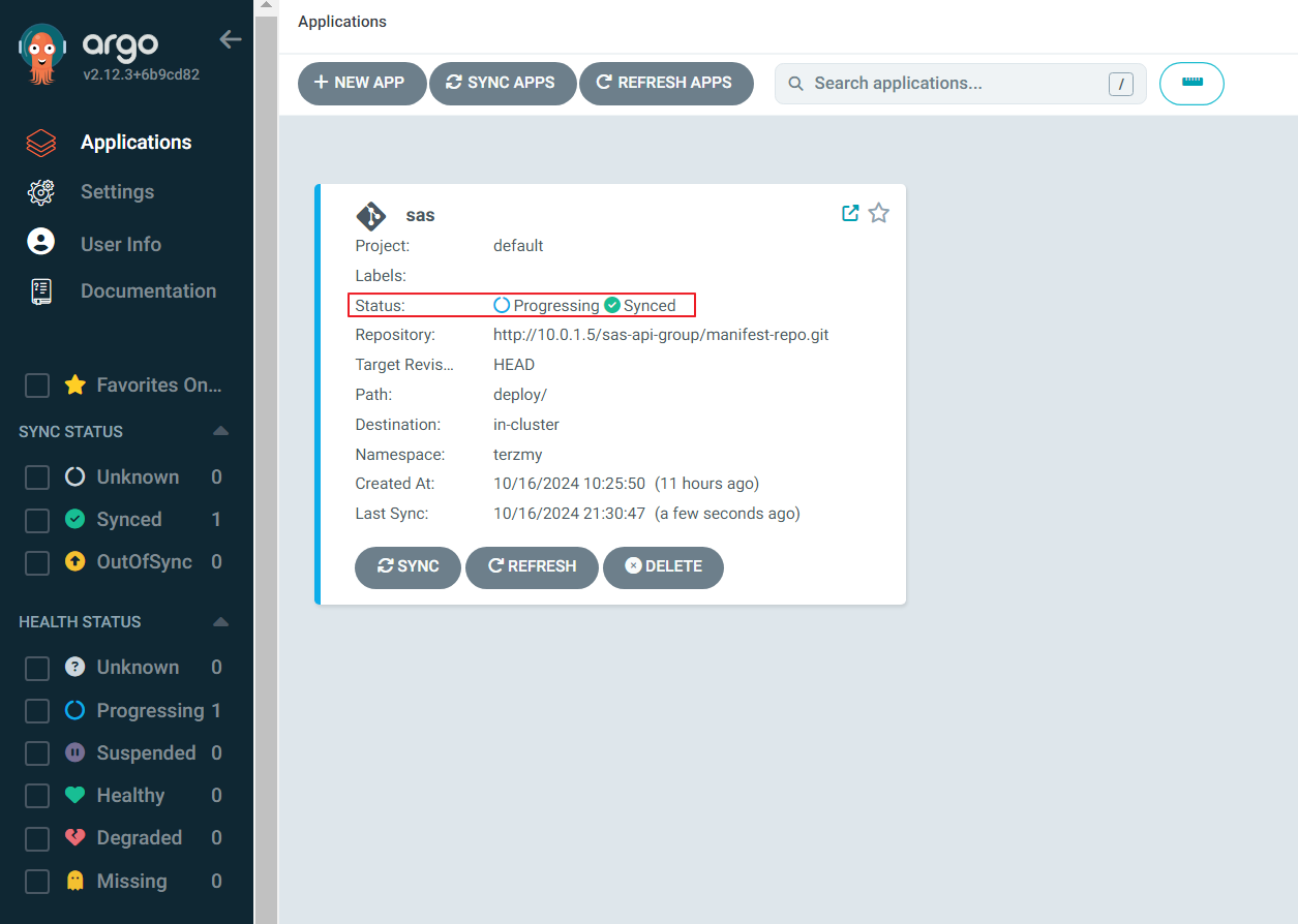 - Application 추가를 통해서 ArgoCD를 통한 배포 설정을 완료할 수 있다.