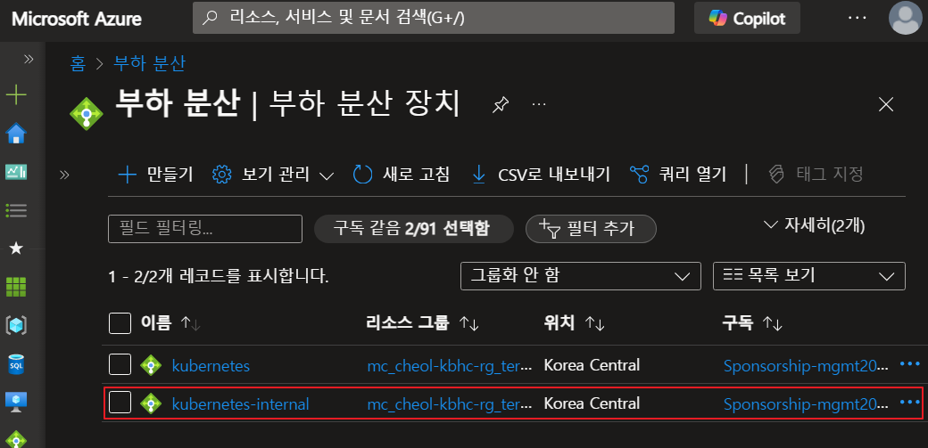 - kubernetes-internal 생성