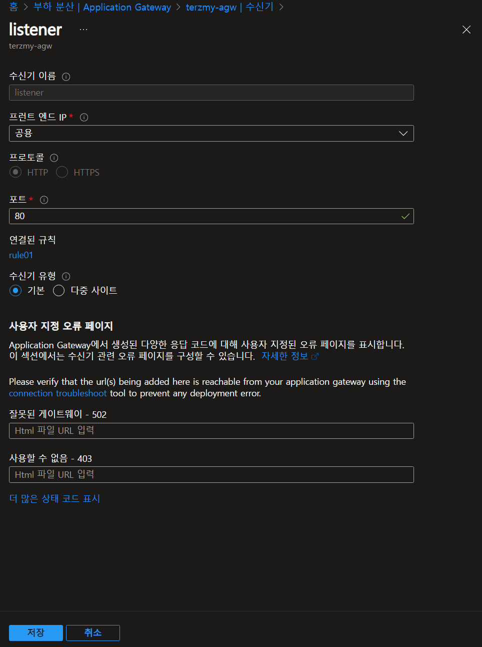 - AGW 리스너 규칙 설정