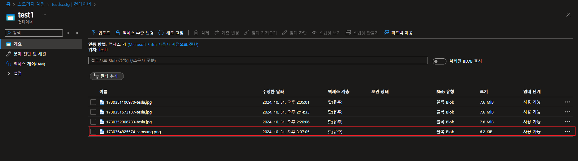 - 이미지가 Blob Storage에 정상적으로 업로드 됐는지 확인합니다.