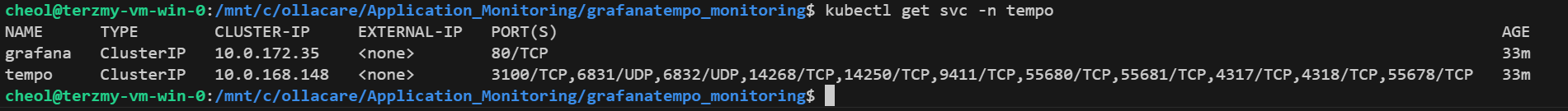 - (aks cluster의 metric을 받아오는 tempo container가 3100으로 되어있고 svc이름이 tempo라서 그런거 같은데..틀린부분 댓글 달아주세요 ㅠㅠ)