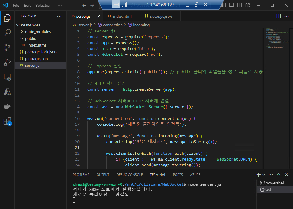 // WebSocket 서버를 HTTP 서버에 연결