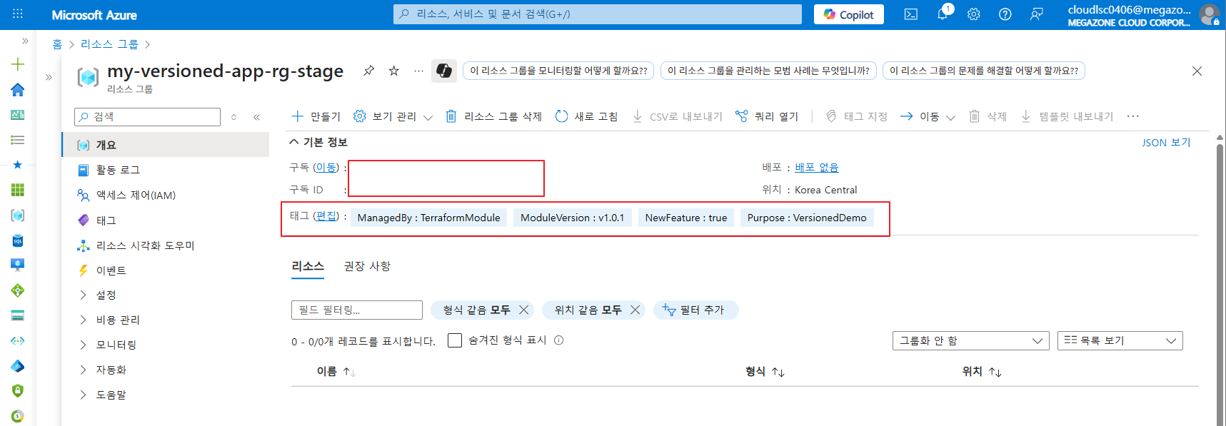 (리소스 그룹의 경우 v1.0.1 모듈을 사용해서 배포한 것은 유지 됩니다. 모듈이 나눠져있기 때문입니다. )